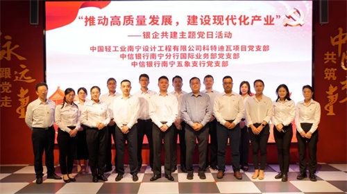 中國海誠南寧公司科特迪瓦項目黨支部與中信銀行南寧分行國際業(yè)務部黨支部、中信銀行南寧五象支行黨支部開展銀企共建主題黨日活動。
