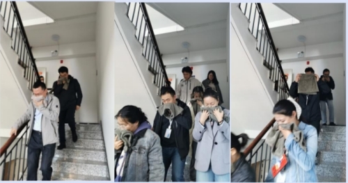 隨即,聽到消防廣播聲和警報(bào)后,所有員工立刻停下手中工作,使用濕毛巾捂住口鼻,從走廊兩側(cè)步行樓梯迅速向樓下進(jìn)行疏散。整個(gè)疏散過程有序、高效,不到10分鐘,所有疏散人員均已撤離大廈。
