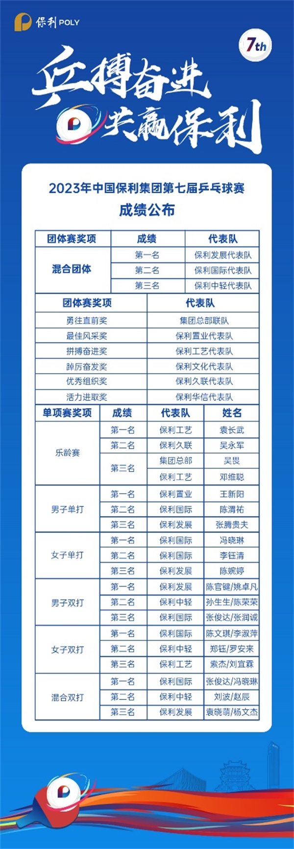 保利集團(tuán)第七屆乒乓球比賽獲獎情況