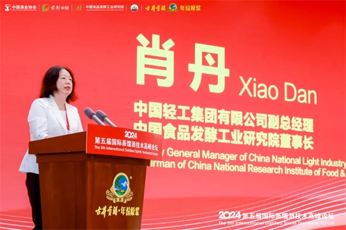 肖丹首先向出席大會的嘉賓表示熱烈歡迎,向此次會議承辦方安徽古井集團有限責任公司的大力支持表示誠摯謝意。她表示,蒸餾酒產(chǎn)業(yè)憑借其深厚的歷史底蘊和廣泛的市場需求,已成為現(xiàn)代經(jīng)濟發(fā)展的重要產(chǎn)業(yè)之一。聚焦“創(chuàng)新、質(zhì)優(yōu)”的新質(zhì)生產(chǎn)力成為白酒行業(yè)高質(zhì)量發(fā)展的新動能。中國食品院將與行業(yè)企業(yè)一道,共同推動傳統(tǒng)釀酒行業(yè)向數(shù)字化、智能化、綠色化轉(zhuǎn)型升級,助力國際蒸餾酒產(chǎn)業(yè)高質(zhì)量發(fā)展。
