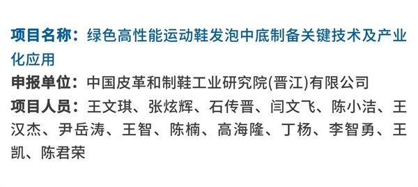 中國皮革制鞋院晉江公司申報的“綠色高性能運動鞋發(fā)泡中底制備關(guān)鍵技術(shù)及產(chǎn)業(yè)化應(yīng)用”項目,以典型鞋用EVA和TPU彈性體為基體,開展了綠色高性能運動鞋發(fā)泡中底制備關(guān)鍵技術(shù)及產(chǎn)業(yè)化應(yīng)用相關(guān)工作,揭示了相關(guān)材料改性調(diào)控機(jī)制、內(nèi)在發(fā)泡行為及作用機(jī)理。項目成果填補(bǔ)了制鞋行業(yè)在發(fā)泡EVA中底和生物質(zhì)改性TPU中底領(lǐng)域空白。