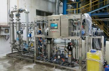 技術(shù)參數(shù):陶瓷膜單元:由兩個(gè)組件組成,每個(gè)組件中19根陶瓷膜,單根膜的有效面積為0.24m2,兩個(gè)組件的膜孔徑分別為20nm和50nm,每個(gè)組件的有效過(guò)濾面積為4.5m2,總面積9m2;反滲透單元:由兩級(jí)組成,一級(jí)面積為80m2,二級(jí)面積為40m2操作壓力0.1MPa~0.6MP