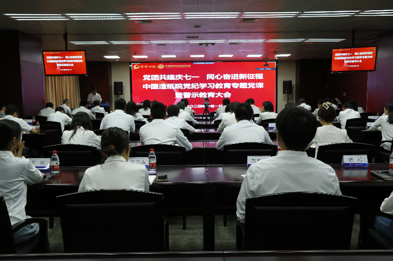 按照保利中輕黨委黨紀(jì)學(xué)習(xí)教育統(tǒng)一部署和造紙?jiān)狐h委相關(guān)安排,7月1日,中國(guó)制漿造紙研究院(以下簡(jiǎn)稱“中國(guó)造紙?jiān)?rdquo;)黨委召開“黨團(tuán)共建慶七一 同心奮進(jìn)新征程”黨紀(jì)學(xué)習(xí)教育專題黨課暨警示教育大會(huì)。保利中輕副總經(jīng)理,中國(guó)造紙?jiān)狐h委書記、董事長(zhǎng)孫波以《深化黨紀(jì)學(xué)習(xí) 守住“四個(gè)關(guān)口” 護(hù)航造紙?jiān)焊哔|(zhì)量發(fā)展》為題講授黨紀(jì)學(xué)習(xí)教育專題黨課。黨委委員、常務(wù)副總經(jīng)理田超主持大會(huì)。